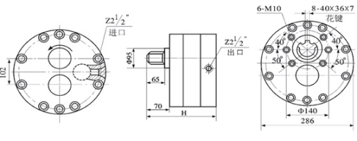 DCB-B160-500低噪音大流量液壓齒輪泵(bèng)安裝尺寸圖