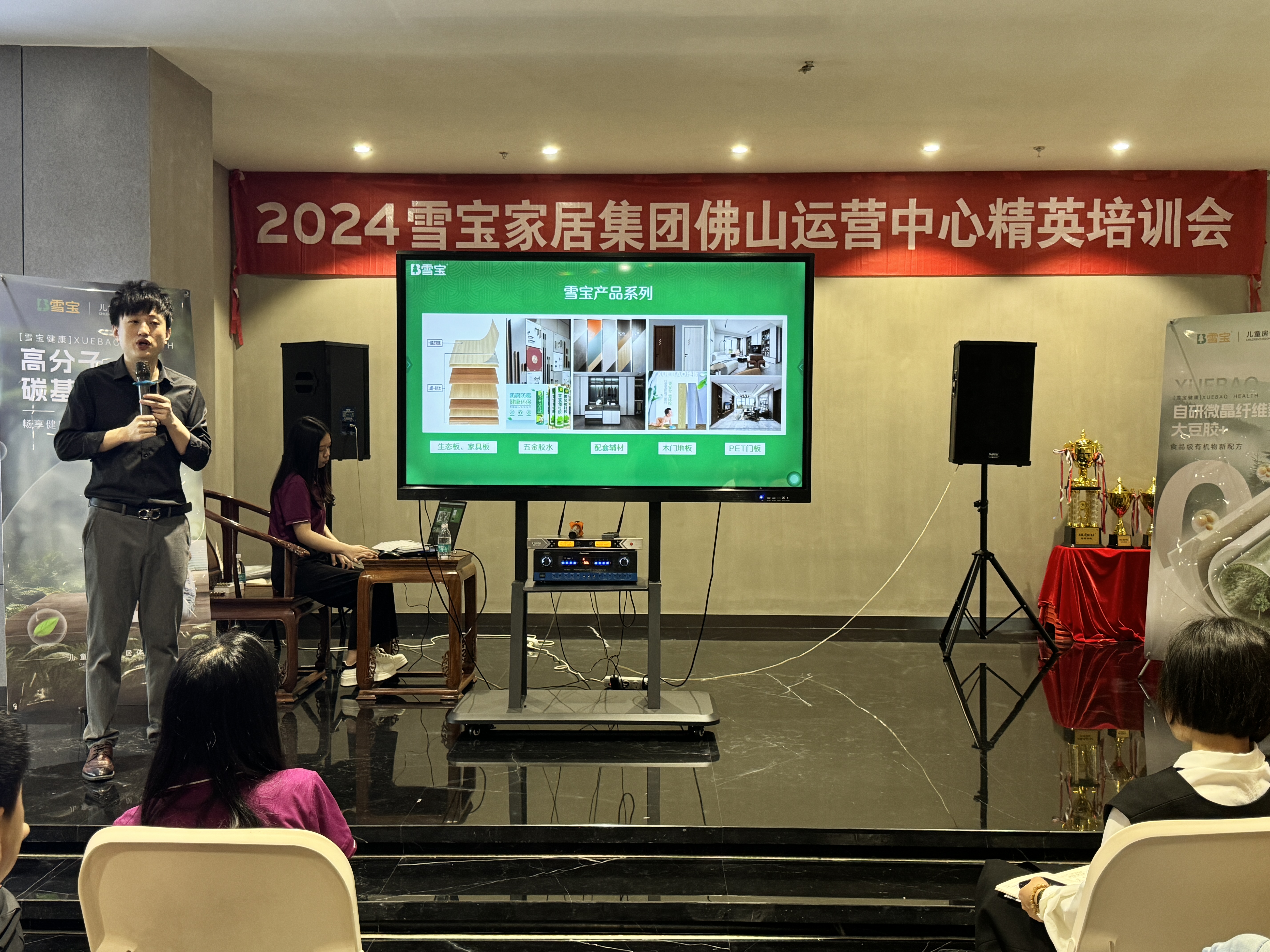 知常明變者贏,守正(zhèng)創新者進。雪寶集團主動營銷部部長方(fāng)俊,首先為大家介紹雪寶品牌。雪寶集團位於(yú)湖南株洲,是中國十大知名板材品牌,旗下擁有兩(liǎng)大智能製造基(jī)地,雪寶家居產(chǎn)業園及(jí)雪寶新材科技工業園,占地(dì)100多畝(mǔ),近7萬(wàn)平方米,集現代化全屋定製生產線及科研樓於一體。建有完整的配套產品生產線:從紙張研發、印刷(shuā)、浸膠、再到壓貼,最後到成品(pǐn)定製,全產業鏈打造。