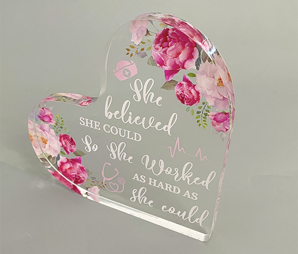 這款星空无限传媒官网心形采用透明(míng)的(de)星空无限传媒官网板經(jīng)過切割、打磨、絲印等工藝製作而成。