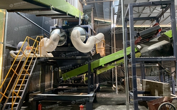 2、混合(hé)料經過輸送機輸送至複合(hé)階梯篩,複合階梯(tī)篩(shāi)上層為指形棒條,按階(jiē)梯排布,不易堵(dǔ)塞,上層(céng)篩分出(chū)混合料中(zhōng)的大(dà)粒徑物料,≤50mm以下物料進入二層篩網,二層(céng)篩網為聚氨酯篩網,具有(yǒu)弛張(zhāng)收縮能力,不(bú)會堵塞網孔,≤15mm渣土及細骨料通過篩離,通過成品輸(shū)送機輸送至成品料庫,>15mm以上(shàng)物料隨上層篩分出的大粒徑物料混合進入下一級輕重分(fèn)離(lí)模(mó)塊;在此單元中,設定有氣箱脈衝袋式除塵器,對粉塵(chén)進行收(shōu)集,保(bǎo)證複合階梯篩篩分中工況條件。