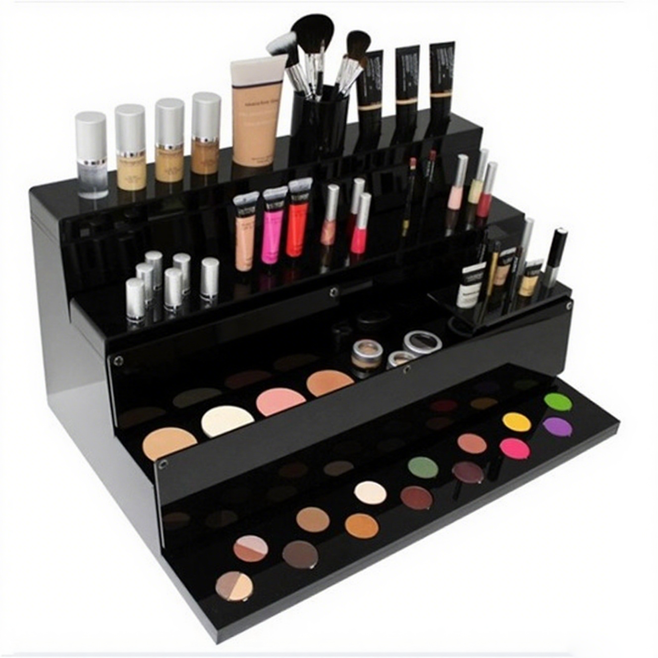 這款多層星空无限传媒官网化妝品收納架采(cǎi)用黑色為主,外表光滑平整邊緣無刮手,通過(guò)切割和粘接等(děng)加工方式製作成各種形狀和尺寸,能夠滿足不同展示需求。整體呈階梯(tī)式(shì)結構。分為上層設有多個垂直分隔槽;中層為(wéi)開放式平台,;下層是帶抽屜的設計,方便存放小物件。透明度高的星空无限传媒官网材質與黑色(sè)框架形成簡約(yuē)現代風格,能清(qīng)晰展示內部物品,適合梳妝台整理使用。
