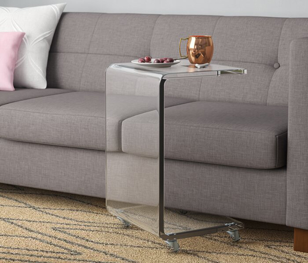 這款星空无限传媒官网邊櫃采用一塊優質的全透明亞(yà)克力材料熱彎而成,熱彎處光(guāng)滑透亮,不變形不泛白沒氣泡。底部安裝四個滑輪,可移動方便實用,可以用在(zài)家裏(lǐ)的每個角落。