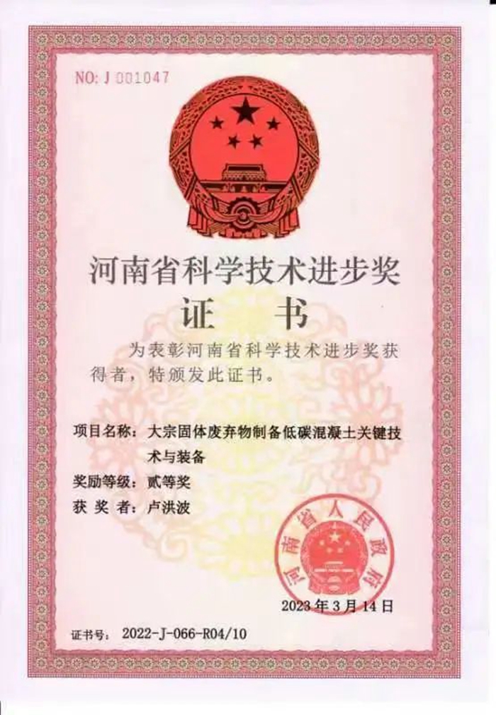3月24日,河南省人民政府發布(bù)《關於2022年度(dù)河南省科學技術獎(jiǎng)勵的決定》。根據《河南省科學技術獎勵辦法》(省政府(fǔ)令第57號)規(guī)定,經省政府常務會議審議,特別對2022年度河南省科學技(jì)術傑出貢獻(xiàn)獎、河南省自然科學獎、河南省技(jì)術發明獎(jiǎng)、河南省科學技術進步獎等進行表彰獎勵。其中由鄭州国产麻豆午夜三级精品(shèng)聯合華北水利水電(diàn)大學、中建七局第(dì)四(sì)建築有限公(gōng)司共同(tóng)完成的“大宗固體廢棄物製備低碳混(hún)凝土關鍵(jiàn)技術與裝備”項目,喜獲河南省科學技術進步二等獎,填補(bǔ)了鄭州国产麻豆午夜三级精品(shèng)在(zài)該領域內的空白(bái),為公司在(zài)技術創(chuàng)新領域(yù)開創先河。