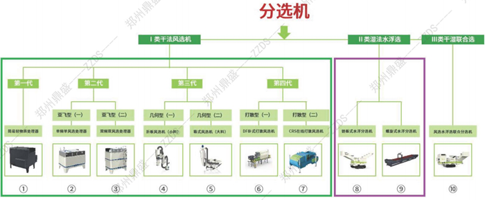 2、除雜裝備:鏈板式水浮分選機;螺旋式浮選(xuǎn)分選機;幹濕聯合分選機。