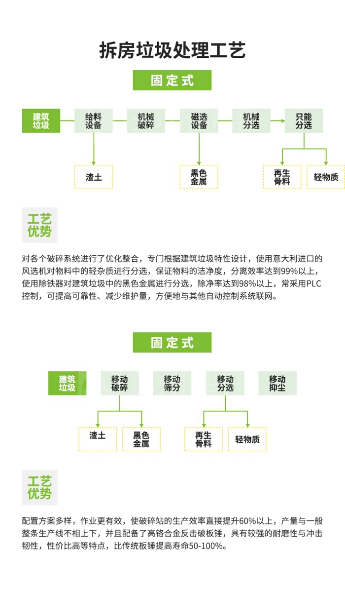 建築垃圾再生利用重要的設備是破碎機環節,如果一個企業能夠生產性能優越的建築垃圾破碎機,那麽它一定對(duì)建築垃(lā)圾處置工藝流(liú)程、方案設計、項目規劃都有非常豐富的經驗(yàn),隻有掌握建築垃圾資源化利用的每個處置環節,才能生產出來質量過硬且適合市場的建築垃圾破碎機。