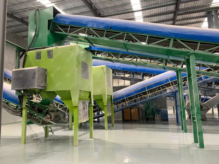 設備配(pèi)置:板(bǎn)式喂料機、階梯棒條篩、雙軸撕裂機、滾筒篩、臥式打散風選機(jī)、人工分揀倉、除鐵(tiě)器、收塵器(qì)等