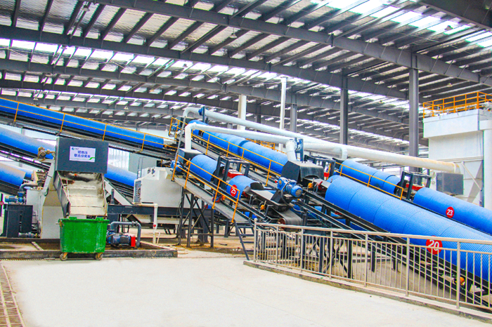 設備配(pèi)置:板式(shì)喂料機、階梯棒條篩、雙軸撕裂機、滾筒篩、臥式打散風選機、人工分揀倉、除(chú)鐵器、收塵器等(děng)