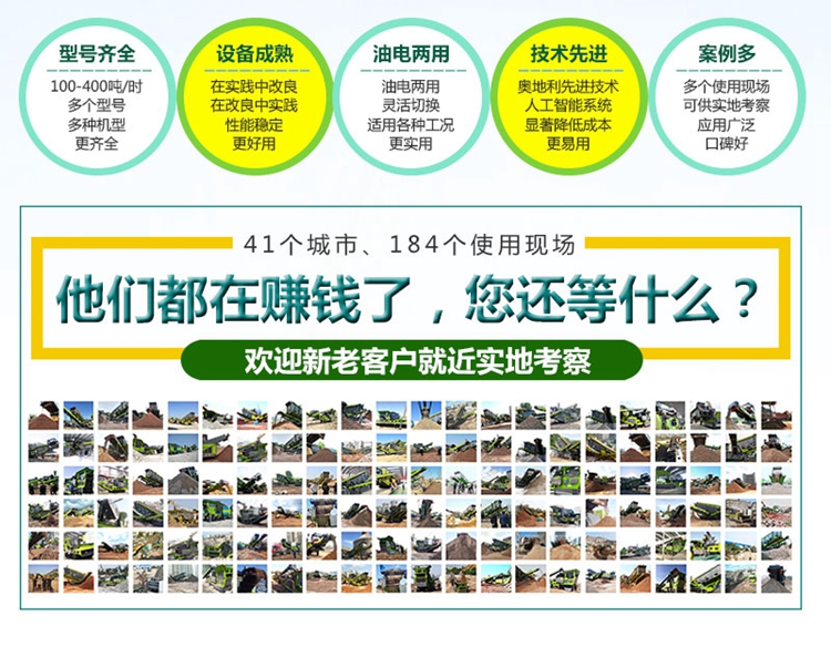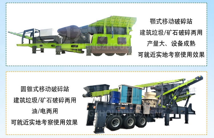 設備配置:輪胎式移(yí)動破碎站、輪胎式移動篩分站