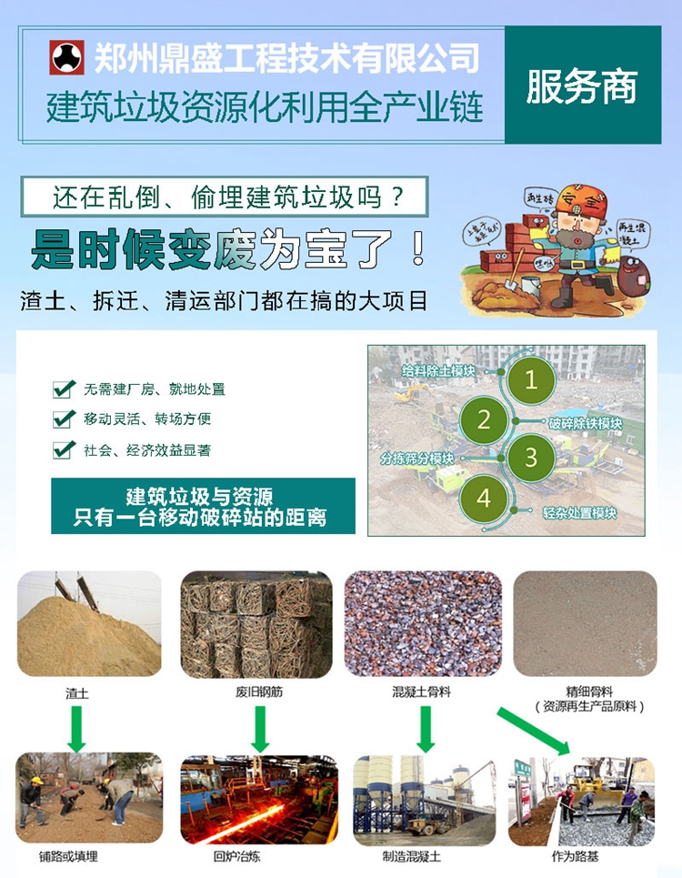 隨著多(duō)個省(shěng)市大型高標準建築垃圾資源化利用項目投入試運營(yíng),建築垃(lā)圾處理正式邁入循環再生利用的(de)新征程。建築垃圾資源化利用項目將有助於(yú)解決建築垃圾亂堆亂放、私拉亂運的問題(tí),實現建築垃圾減量化(huà)、無害化、資源化和產業化(huà)發展,有助於提升品質城市形象,助推全(quán)國文(wén)明城市創建工作。