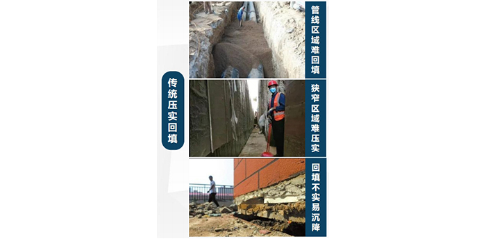 1、適(shì)應管道(dào)溝槽回填、狹窄(zhǎi)區域施工,自密實,無需振搗;