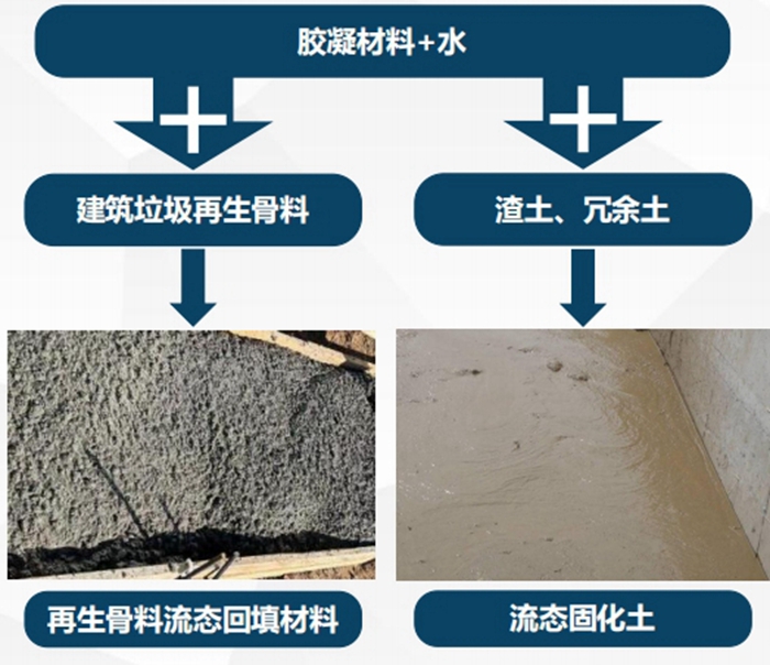 再生回填材料是利用建築垃圾再生骨料、冗餘土(tǔ)、渣土,加(jiā)入水泥或固態劑等膠凝材料、水,攪拌成可泵送的、具有流動性(xìng)的混合材料;通過澆築和養護,硬化後形成(chéng)具有(yǒu)一定強度的(de)工程材(cái)料。