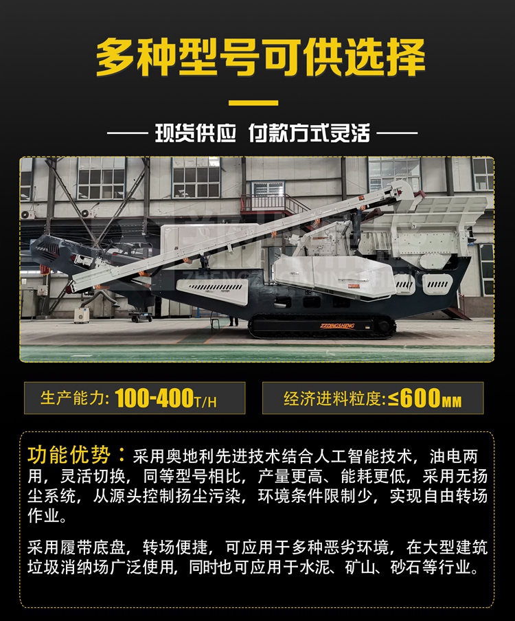 設備配置:TJC履帶式(shì)移動顎破站、WAF輪胎式移動破碎站、WAS輪胎式移動篩分站