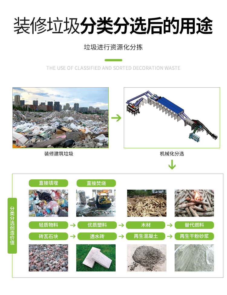 適用物料: 裝修裝潢垃圾、大件垃圾、陳腐垃圾、混合垃圾、建築垃圾等物(wù)料